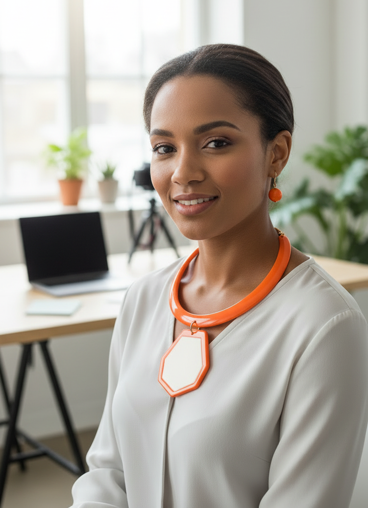 “Fun in the Sun” Orange Geometric Pendant Choker Necklace Set